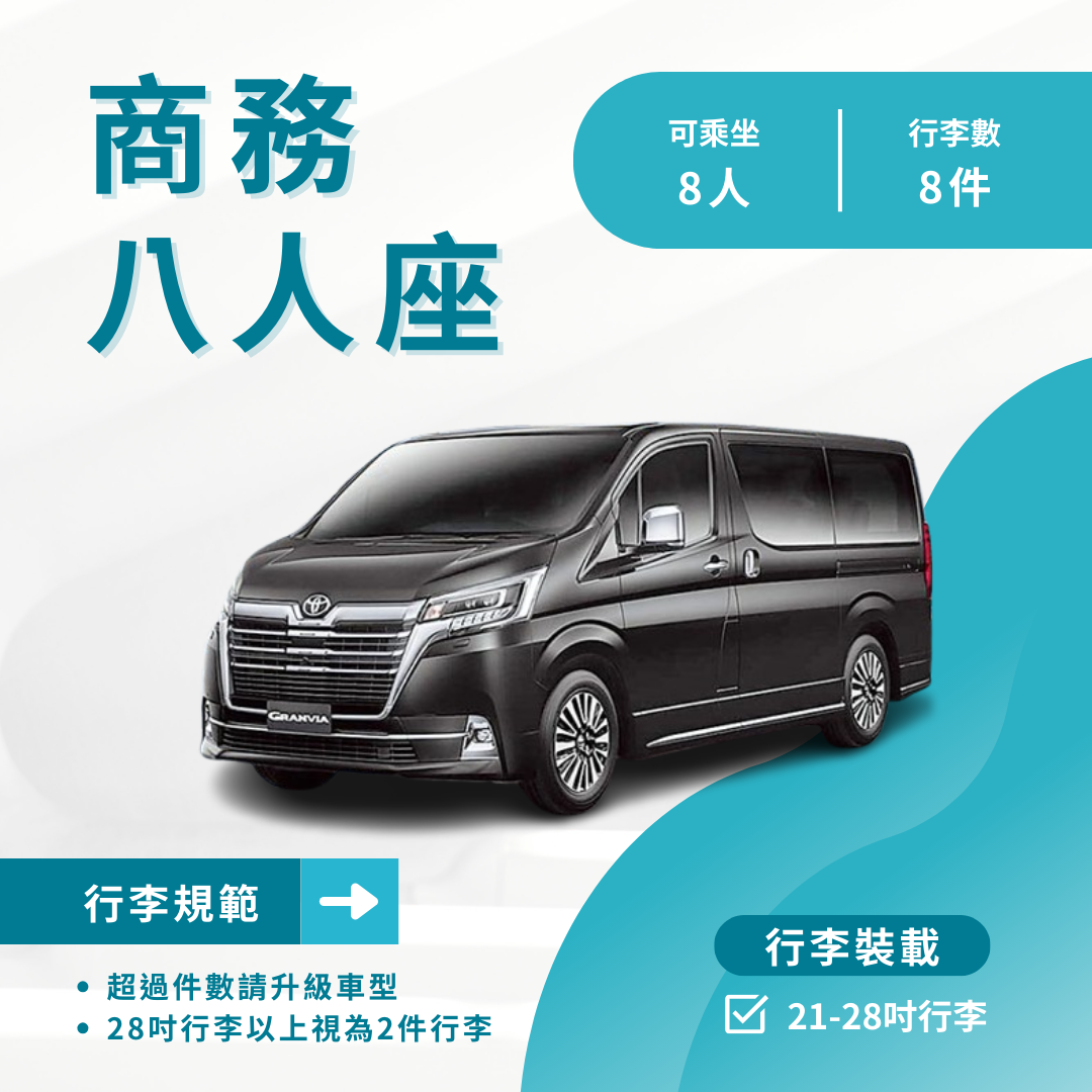 行李數量超過請安排五人座加長型,或九人座車型